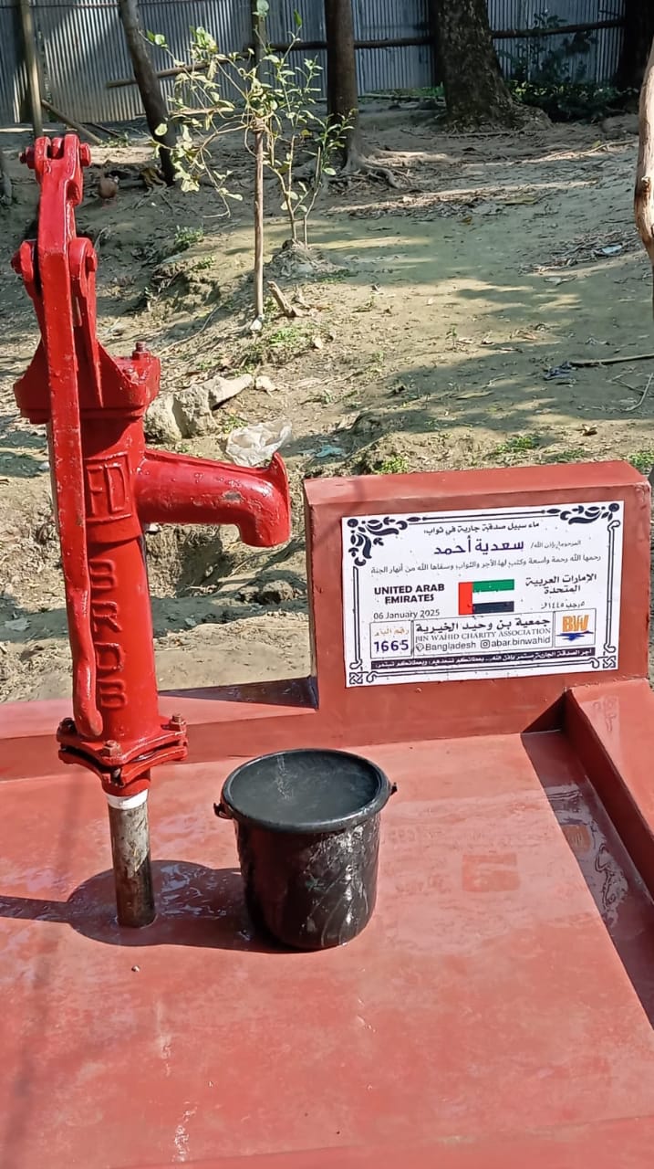 بحمدالله تم حفر هذا البئر بدولة بنغلاديش مع فريق جمعية بن وحيد الخيرية عن المرحومة بإذن الله سعدية أحمد رحمها الله وغفر لها من دولة الإمارات العربية المتحدة.