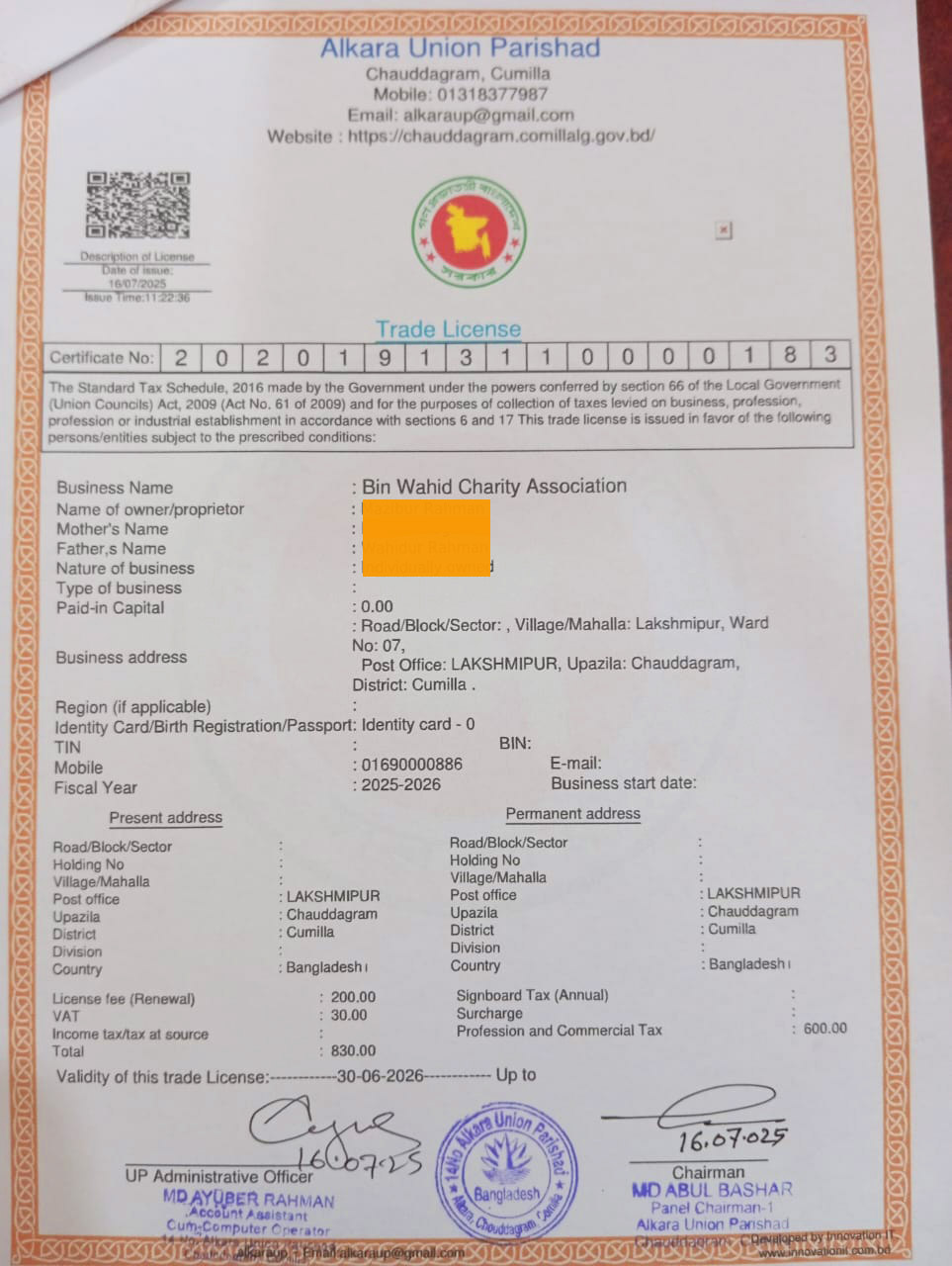 علما أن الترخيص فقط للتنظيم والمصداقية، وفعل الخير متاح للجميع الأهم هو النية الصادقة والامانة.